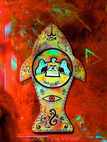 These artworks, designed as protective symbols for synagogues, draw on cultural and historical imagery.